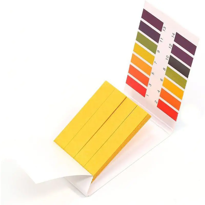 Las tiras de prueba de papel tornasol cambian de color en 15 segundos para combinarse con la tabla de colores de la escala de pH.